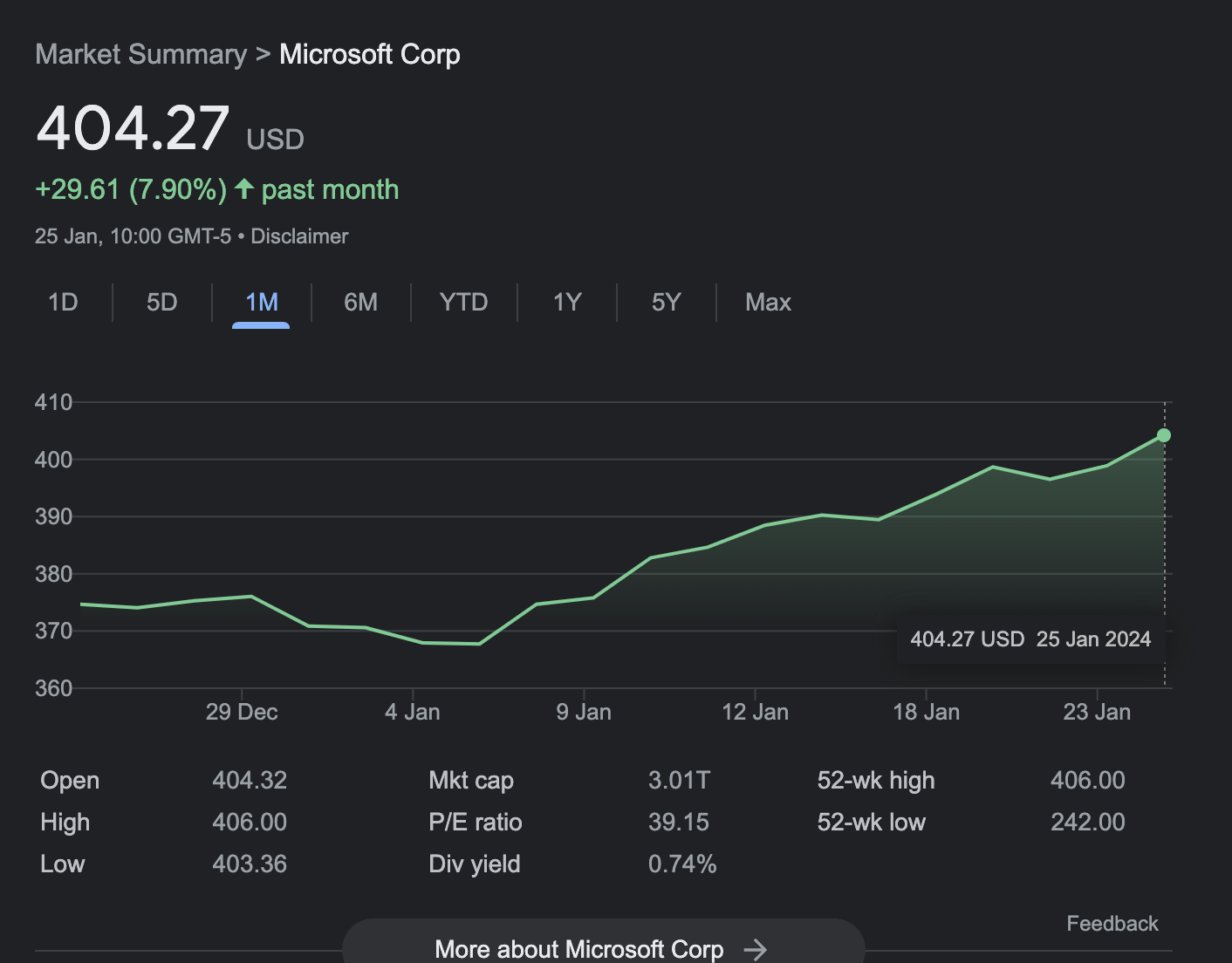 Helpfully for Microsoft, this happened one week before Microsoft’s second quarter financial results were due to be published, on Tuesday 30th January.