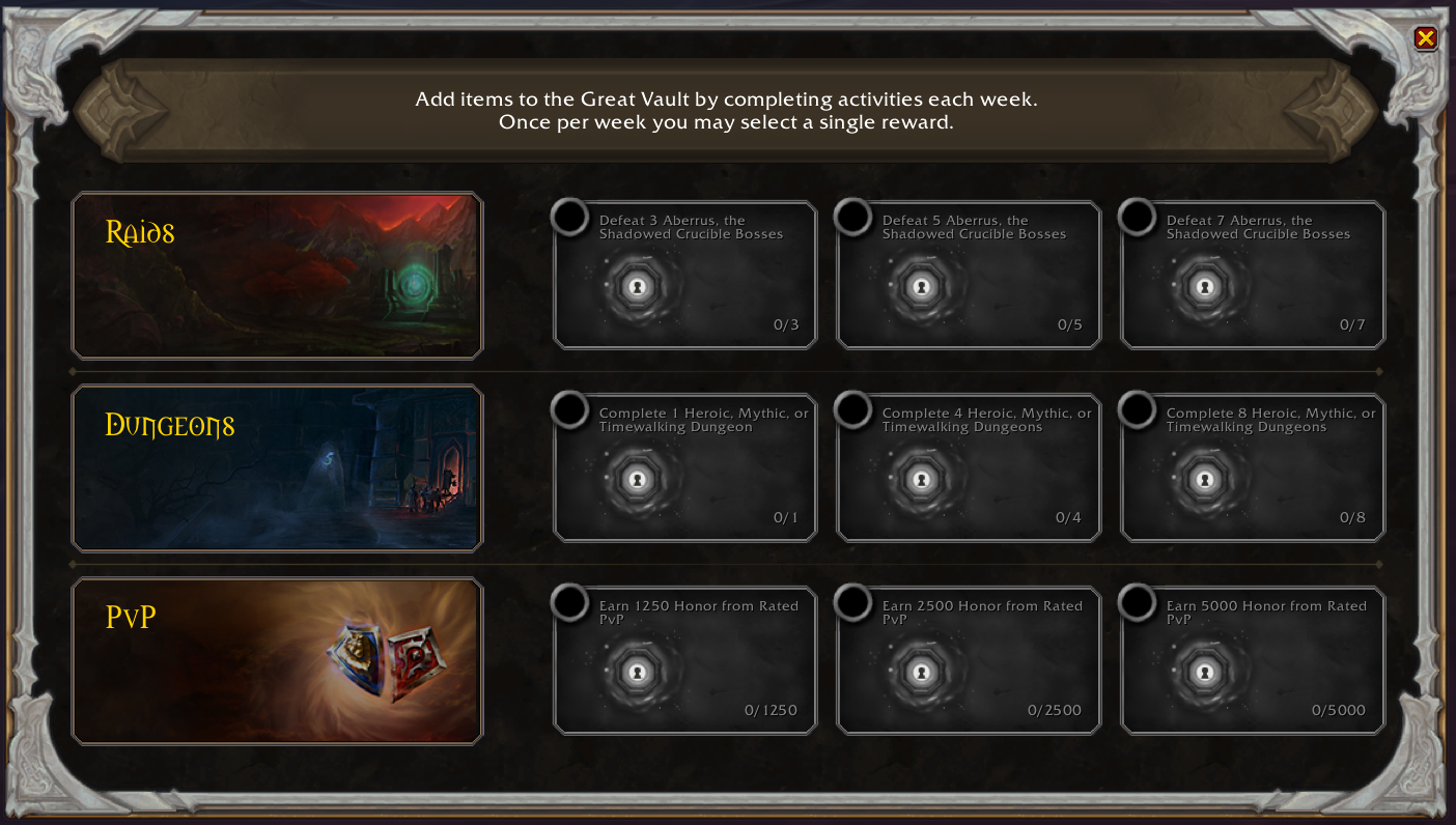 The first completion of the week for each of these activities will award a piece of Adventurer Track Gear, which can be upgraded all the way to 450 with Whelpling Crests.