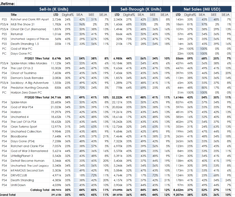 - Remasters and PS5 ports routinely do well - Ghosts of Tsushuima PS5 ending up making nearly a quarter of the original release in sales.
