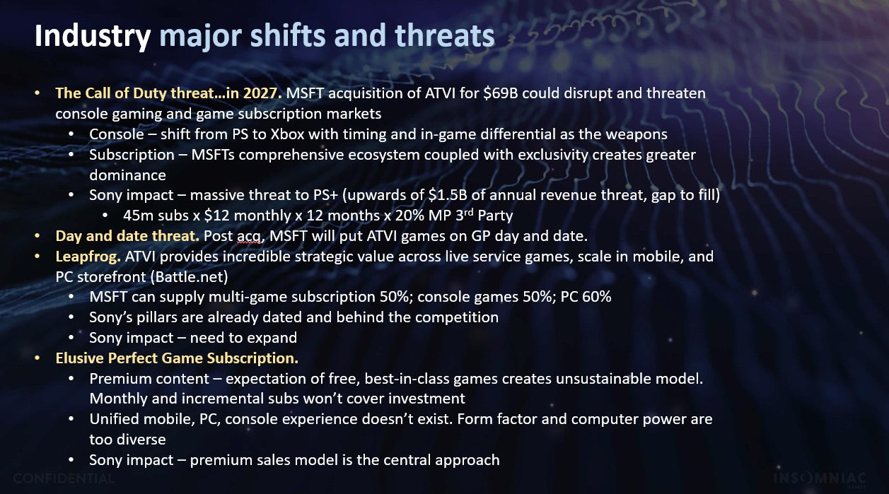 - One of the most important things we’ve seen though are slides which reveal how Sony feel about the general console space - and the Activision Acquisition.