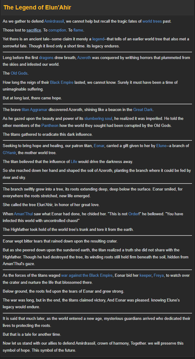 - Still doesn't quite explain her connection to Azeroth as her daughter, as seen in Eyes of the Earth Mother.