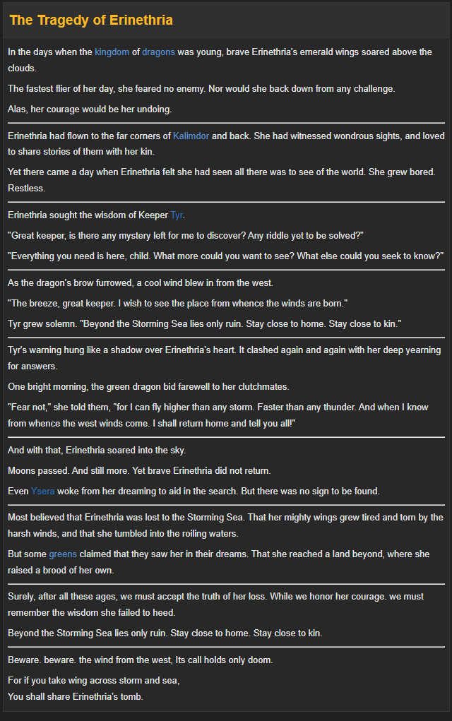 We’re finally going to the Emerald Dream! Or should I say, we’re finally going to the eye of Ysera? We’ve been in the Emerald Dream plenty of times, from Nighthaven being the Dream incarnate on Azeroth during Vanilla, through to the Dreamway and Emerald Nightmare of Legion. But this is different. I mean, It’s the dragon expansion, right? So when they were trawling for the lore to build the expansion, they went back to the source. Back to the Manual of Warcraft 3, which didn’t introduce Dragons. That technically happened shortly before the game launched with Knaak’s Dragonlance series Day of the Dragon, which wrapped up all the Dragon lore from Warcraft 2 into a neat story. But the game’s what’s important, so the Warcraft 3 manual is where we’d look, and that's where it talks about the Emerald Dream. Explaining Nordrassil, it writes;